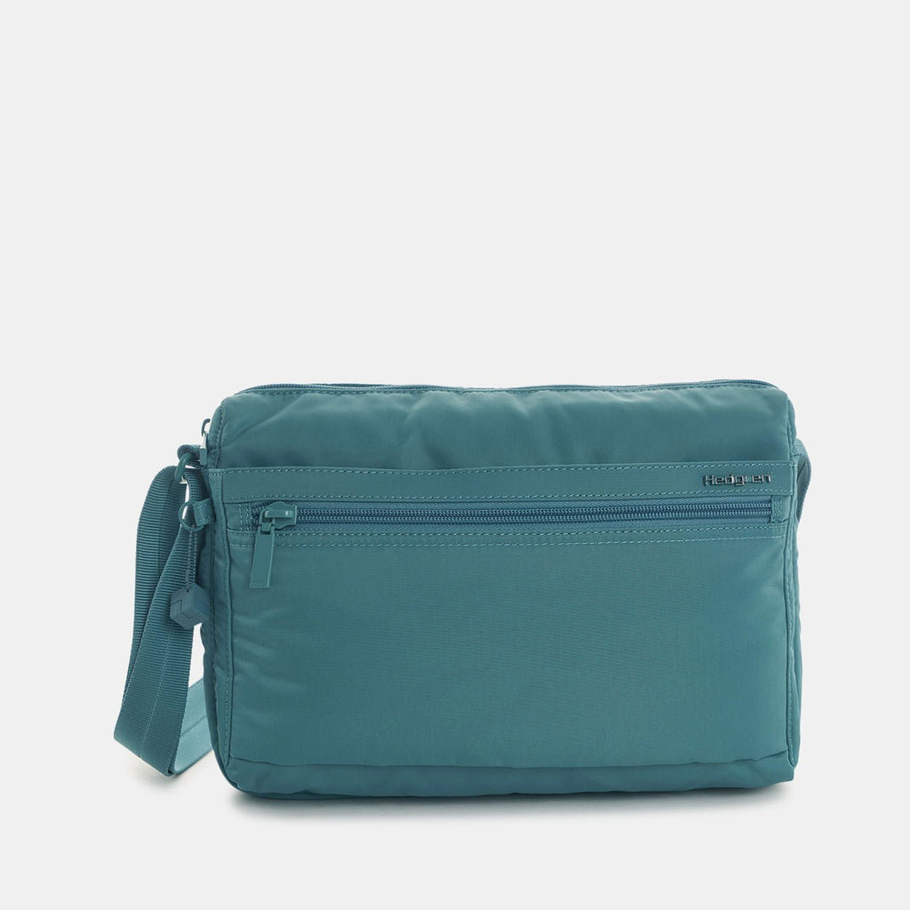 • Front zippered compartment has one open slip pocket