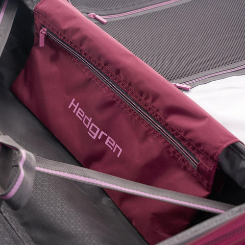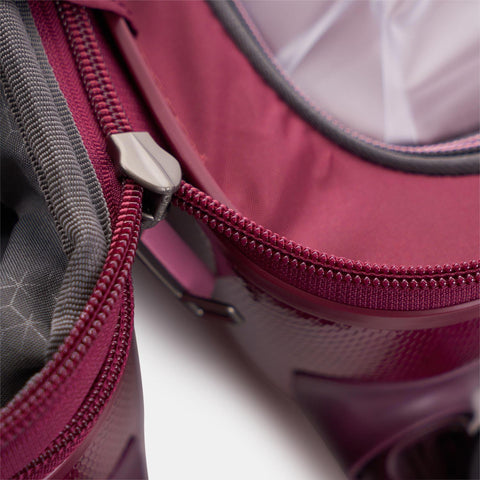- Zippered pocket, mesh zippered pocket, and wet pocket inside