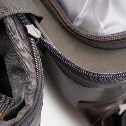 - Zippered pocket, mesh zippered pocket, and wet pocket inside