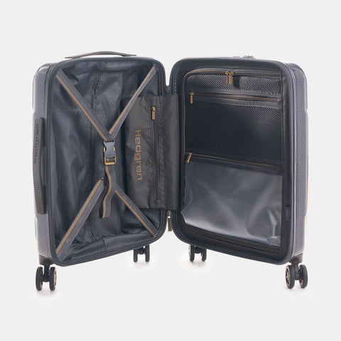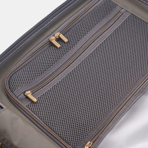 Look good while running through the airport with this stylish Glide extra small spinner case with smart cube design. Made to comply with cabin size restrictions of all aeroplanes, you never have to let go if you don’t want to, ensuring your outfit is always perfectly accessorised! Inside the case, you’ll find organisational details including mesh pockets, one of which is waterproof, and a tie-down strap. The exterior is made of super light, durable polycarbonate material and is complete with TSA lock, double coil secured zippers, four spinner wheels and a trolley system, so you know your contents are secure as you effortlessly push or pull the case around.