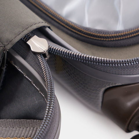 - Zippered pocket, mesh zippered pocket, and wet pocket inside