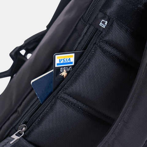 - Side-zip pocket with RFID blocking material on back exterior panel