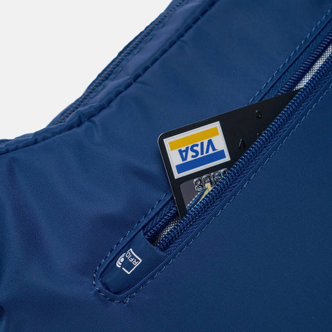 - Back exterior zip pocket with RFID blocking material