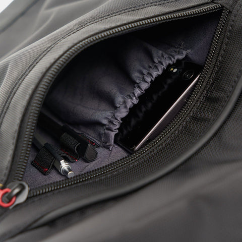 Confidently carry the weight of your day on your back with the Pylon slim backpack, made of water-repellent material, ensuring you are always ready for action. The smart Red Tag design is accentuated with the signature red accents for a look that is striking and promotes high-quality. The square shape is perfect for holding books or files you may need, while the reinforced base helps the bag to carry the weight without sagging or wear and tear. With two open side pockets for easy access to non-valuable items, you can easily pack everything you need, while the foamed adjustable shoulder strap keeps you comfortable during wear.