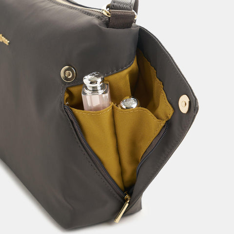 Take a moment to Reflect on just how much you need this compact mini hobo/crossover bag in your life! The versatile design allows you to wear it however feels most comfortable, with removable handle and a bright, fun removable shoulder strap. The exterior is not all about style, despite stunning details including geometric triangles and gold hardware. Our innovative smart sleeve and handy key chain hook make this the ideal bag for everyday use, while your belongings are kept safe within a water-resistant exterior. We know how important it is to have your phone within easy reach, so we’ve included a pocket for this inside.